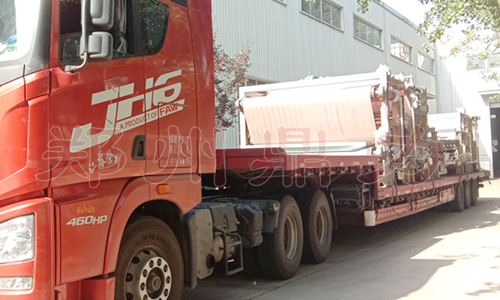 已是秋高氣爽,艷陽灑照,惠風和暢,而高濕廢渣的脫水處理仍不能怠慢,今日,鄭州鼎力銷往飼料廠的兩臺大型紅薯渣帶式壓濾機同車起運,按時發貨。